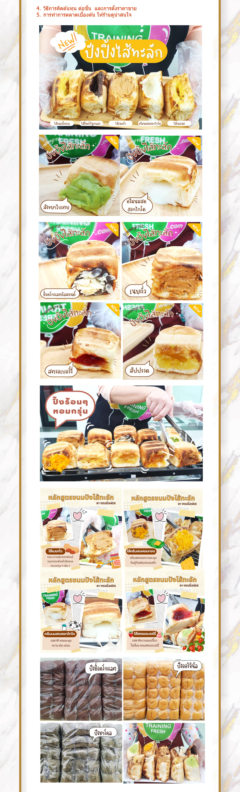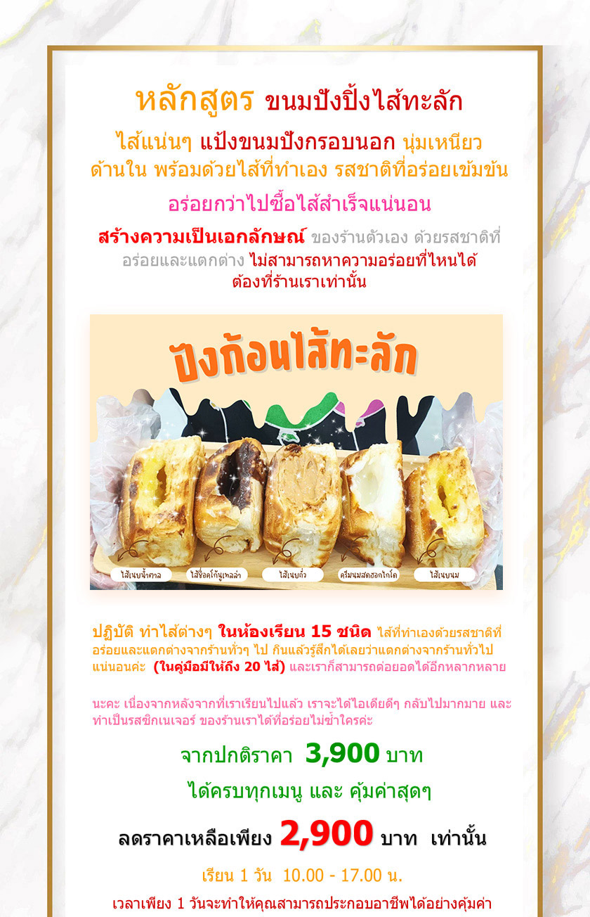 ขนมปังปิ้งไส้ทะลัก ปังเตาถ่าน สูตรไส้ขนมปังปิ้ง ปังปิ้งเตาถ่าน ขนมปังปิ้ง ปังก้อนไส้ทะลัก ไส้สังขยาใบเตย เนยถั่ว นูเทลล่าสอนทำปังไส้ทะลัก ปังเนยสด ปังก้อนปิ้ง ไส้สตรอเบอร์รี่ ไส้เนยน้ำตาล เนยนมสด ไส้หมูหยองพริกเผาไส้ช็อคโกแลตอัลมอนด์ ไส้นมเย็นชมพู ไส้เผือกหอม ไส้มันม่วง ไส้สังขยาชาไทย ไส้ครีมข้าวโพด ไส้กาแฟนมสด ฯลฯ